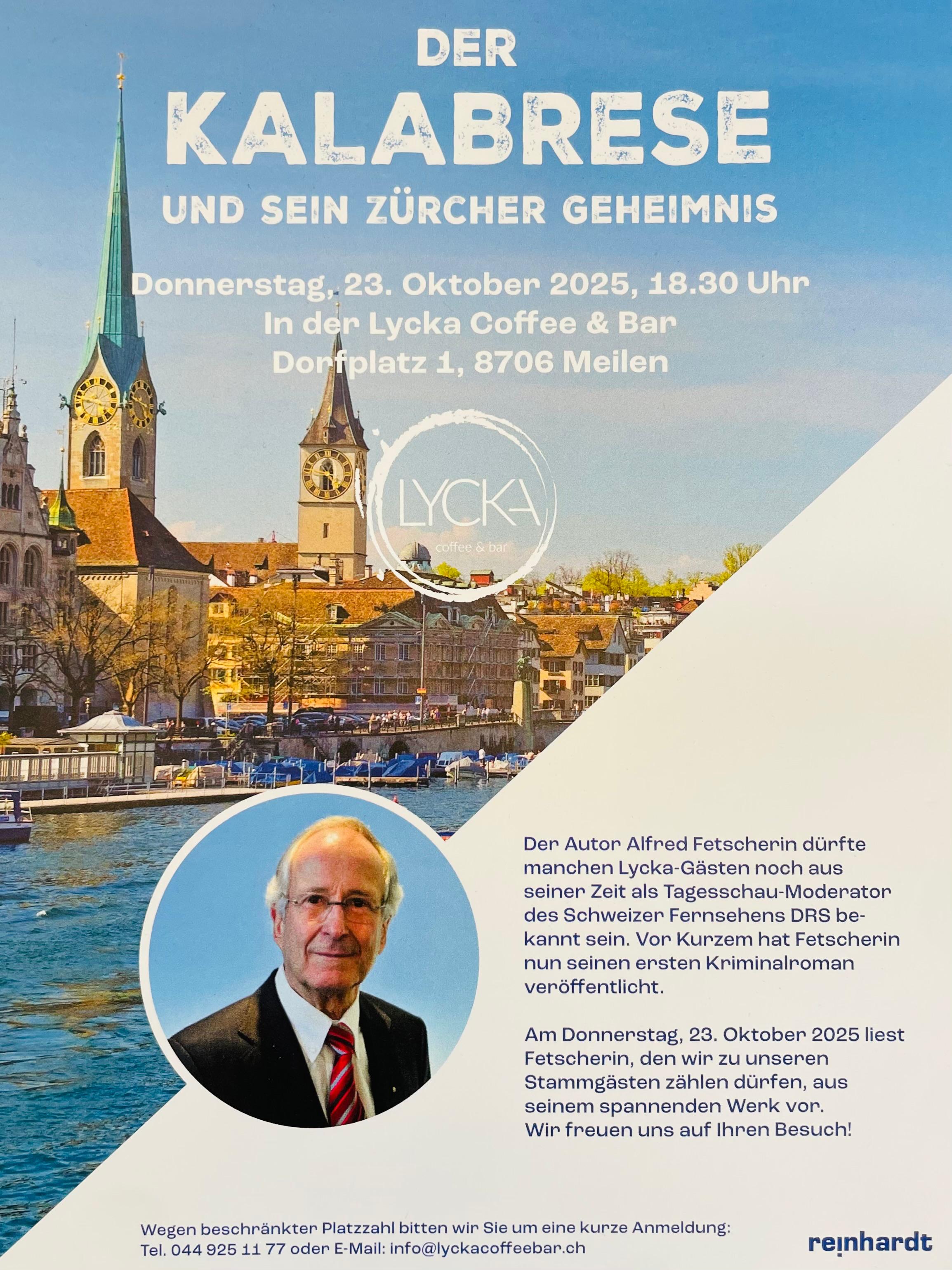 Am Donnerstag, 23. Oktober 2025 liest Fetscherin, den wir zu unseren Stammgästen zählen dürfen, aus seinem spannenden Werk vor. Wir freuen uns auf Ihren Besuch!