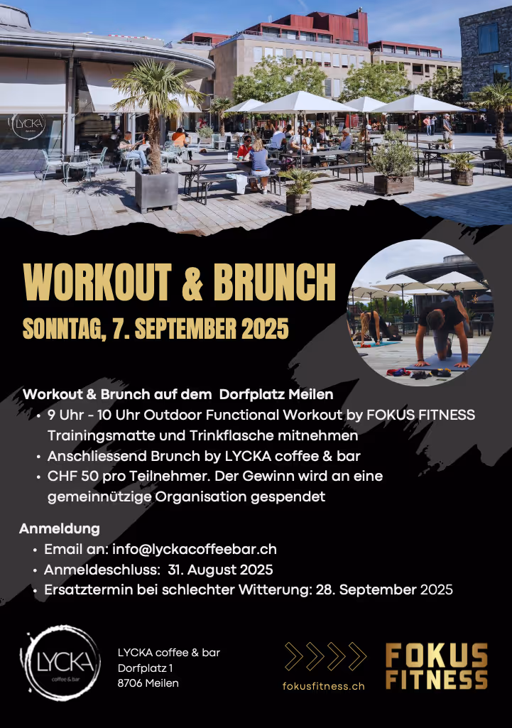 Trainingsmatte und Trinkflasche mitnehmen - Anschliessend Brunch by LYCKA coffee & bar